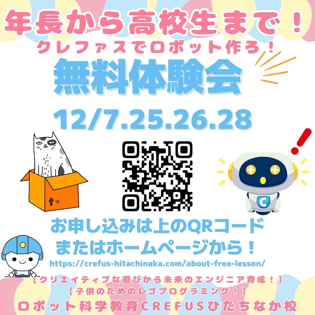 クレファスでロボットプログラミングを体験してみませんか。 ロボット制作、プログラミング体験・説明会を開催中です。どうぞお気軽にお問い合わせ・ご相談ください。