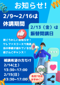 そこで、何と無料!(笑)補講日程をお知らせいたします!